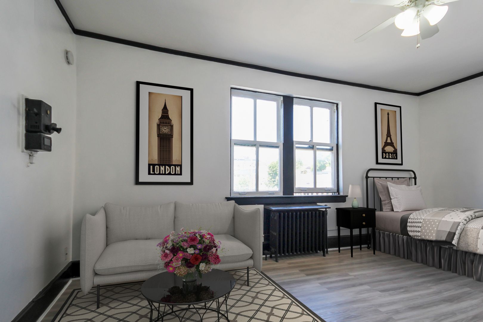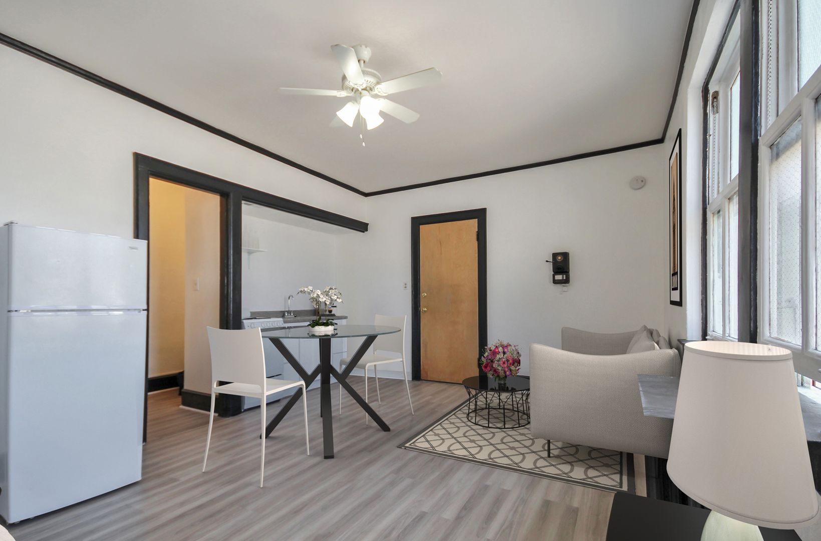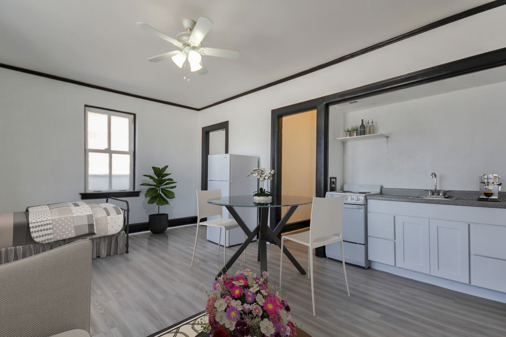 The Morrison offers spacious studio floor plans ready for you. Each studio comes with a full kitchen equipped with an apartment-sized gas range and fridge. Enjoy gorgeous views outside the large windows. High ceilings with ceiling fans make the space feel much more open than traditional studio apartments.
